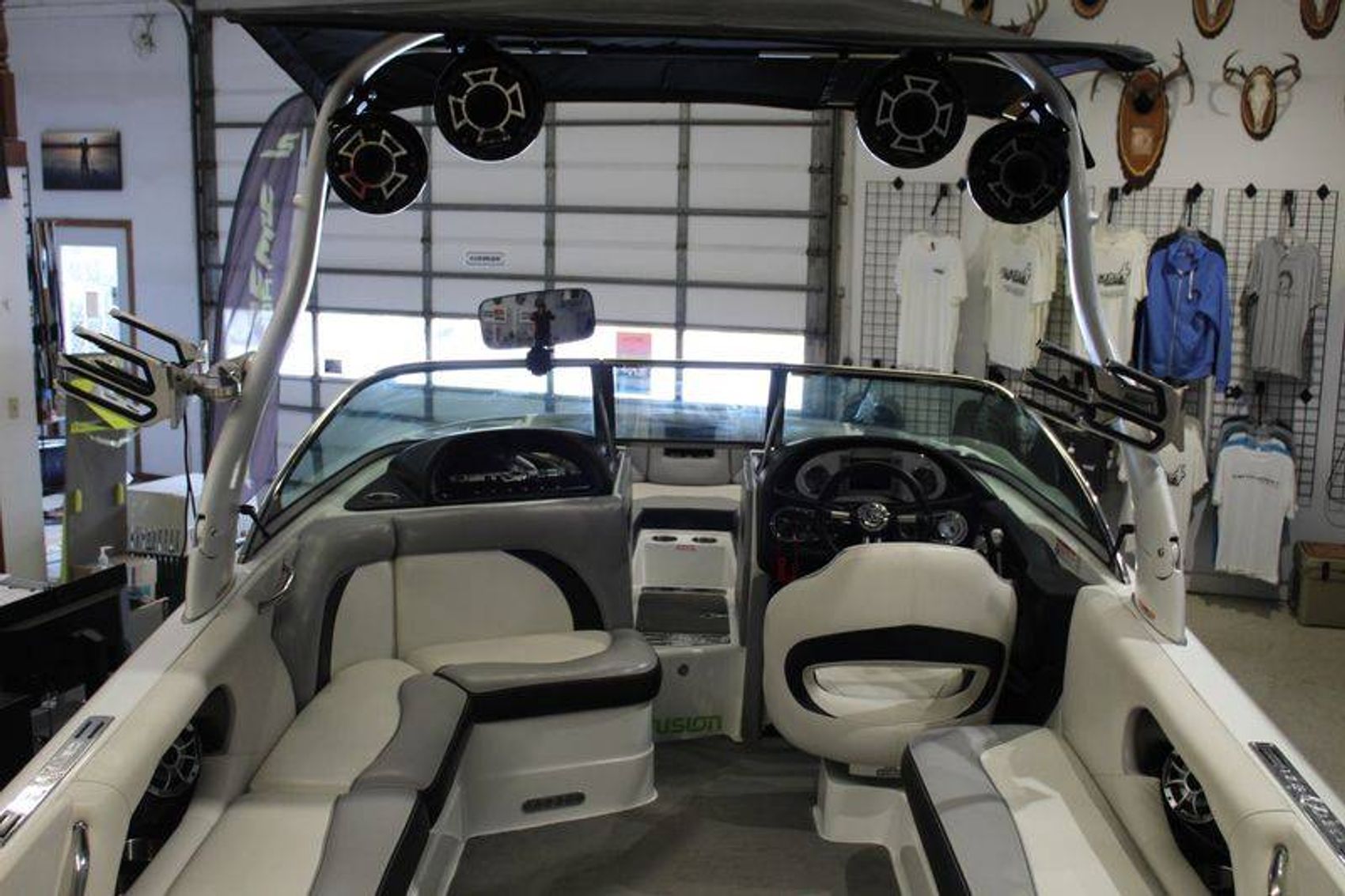 - Features: Fully loaded with QuickFill ballast system and plug-n-play ballast for customizable waves, Maximus tower with board racks and bimini, premium Wet Sounds audio system with 6 in boat speakers, subwoofer, and 4 tower speakers touchscreen dash with Zero Off speed control, heater, dual battery system, premium vinyl upholstery, tandem axle trailer.